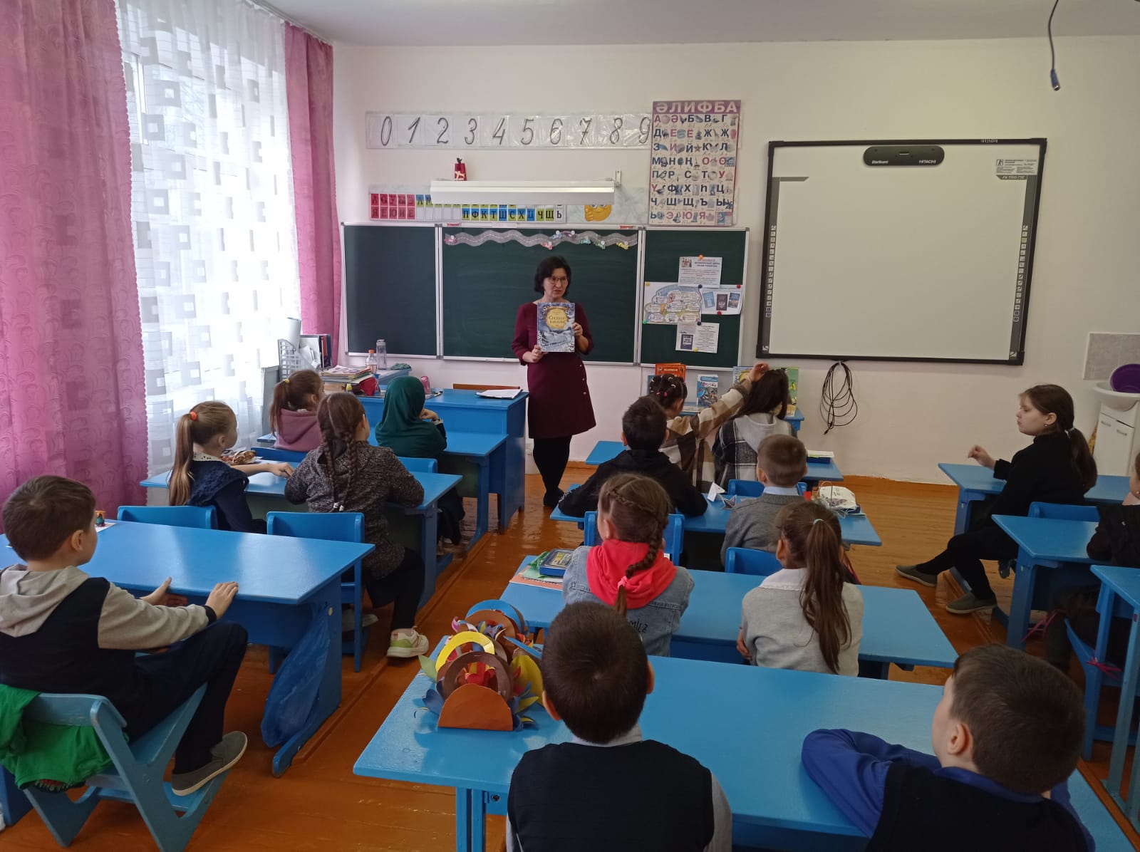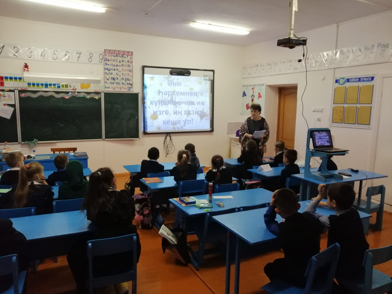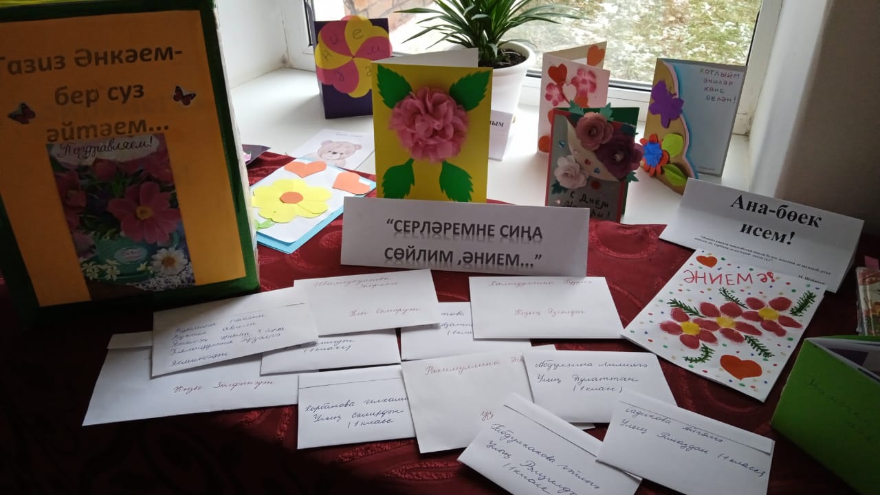 Бүген мәктәбебездә "Иң ягымлы, иң сөйкемле - син ул, әнием!" дигән Әниләр көненә багышланган атналык игълан ителде. Бүген һәр сыйныфта "Әнием -алтыным, минем иң якыным!" дип исемләнгән сыйныф сәгатьләре булып узды. Китапханәче Мухаметзянова Альбина Мәүлит кызы "Айдан, кояштан кадерле - син ул, әнием!" дигән исем астында китап күргәзмәсе оештырды. Пелагог-оештыручы атналык планы белән укучыларны алдан ук таныштырды. Алар бәйгеләргә инде әзерлекне башлаганнар иде. Мәктәп фоесында урнашкан почта ящигына әниләргә юлланган хатлар, шулай ук матур эчтәлекле, бизәлешле открыткалар бәйгесе дә старт алды. Укучылар атна буе мавыктыргыч чара, бәйгеләрдә актив катнашырлар дип ышанып калабыз. Чөнки, әниләр һәркем өчен иң кадерле кешеләр.