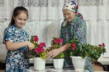 Цель реализации плана «Осенняя неделя добра» - это воспитание уважения к старшим и формирование патриотических чувств. Второклассница Гайнуллина Зульфина поливает цветы вместе со своей бабушкой.