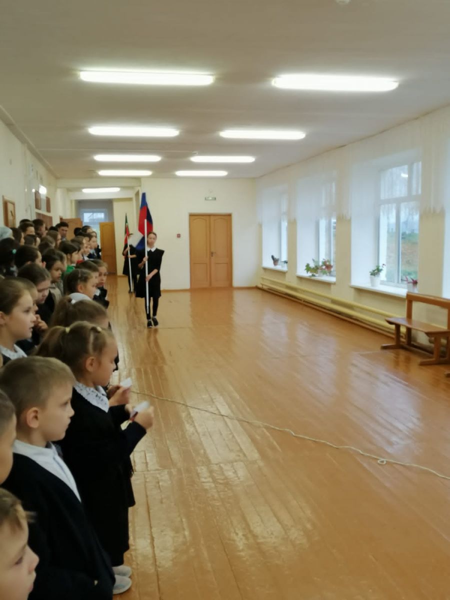 Бүген флагны активистлар, спорт һәм интеллектуаль ярышларда катнашучылар 8 сыйныф укучылары Хәмәтдинова Зилия һәм Рәхимова Таңсылу күтәрде.