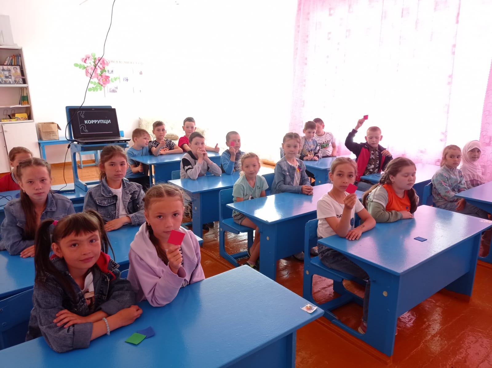 Лагерь - 2022 - 17 ден. В целях формирования антикоррупционного мировоззрения среди детей в пришкольном лагере под хештегом #честныйТатарстан проводится акция "Что такое Коррупция?". Ребята посмотрели презентацию, решили кейсы.