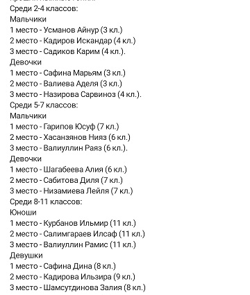 2 февраль көнне гражданлык-патриотик тәрбия һәм спорт айлыгы кысаларында 5-7 сыйныф укучылары арасында баскетбол буенча ярышлар узды. Беренче урынны 7 сыйныф укучылары, икенче урынны - 6 сыйныф, өченче урынны 5 сыйныф укучылары алды.