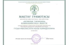 Татарстан Республикасы мәгариф һәм фән министрлыгы белән берлектә "Мәгариф" журналы редакциясе үткәргән Бөтенроссия "Авыл укытучысы - 2018" бәйгесендә "Активлык тарафдары" номинациясендә җинүче дип башлангыч сыйныф укытучысы Хамидуллина Гузәл Мөхлисулла кызы табылды. Мөгаллимебезне зур җиңүе белән ихлас котлыйбыз. Иҗади уңышлар телибез.