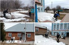 Чтобы приблизить наступление лета, ребята раскидывают оставшийся снег. Это ускорит его таяние под лучами солнца, освободит землю и предотвратит образование глубоких луж.