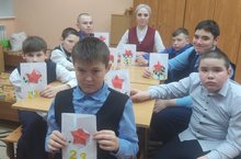Ватанны саклаучылар көненә багышлап, һәр группада әңгәмә һәм кул эше сәгатьләре үтте. Һәр бала күнел җылысын биреп, тырышып открыткалар ясады, стена газеталары чыгарды.