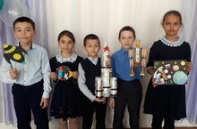 Ко Дню космонавтики учащиеся начальных классов изготовили модели космических аппаратов. / Космонавтика көненә башлангыч сыйныф укучылары космик аппаратларның модельләрен ясаганнар.