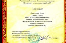 Призер муниципального этапа республиканской олимпиады школьников по татарскому языку 28.12.2018