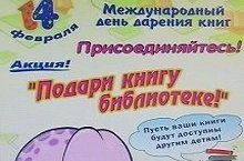 14 февраля "Международный день дарения книг". Присоединяйтесь к акции "Подари книгу библиотеке". Пусть ваши книги станут доступны другим детям!