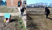 Санитар-экологик икеайлык кысаларында мәктәпкәчә төркем хезмәткәрләре беркетелгән территорияләрне чүп-чардан, былтыргы үләннән җыештырдылар, чәчәк түтәлләрен тәртипкә китерделәр.