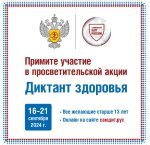С 16 по 21 сентября пройдет федеральная образовательная акция «Диктант здоровья». Цель мероприятия – популяризация санитарно-гигиенической грамотности и норм здорового образа жизни