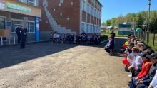 В преддверии летних каникул и с целью предупреждения детского дорожно-транспортного травматизма, государственный инспектор безопасного дорожного движения ОГИБДД Нуреев Рустем Робертович и старший лейтенант полиции Зайнагутдинов Айнур Ахатович провели профилактическую беседу с учащимися нашей школы о правилах поведения на дорогах в период летних каникул. Җәйге каникуллар алдыннан һәм балалар юл-транспорт травматизмын кисәтү максатыннан, ЮХИДИ бүлегенең куркынычсыз юл хәрәкәте дәүләт инспекторы Нуриев Рөстәм Роберт улы һәм полициянең өлкән лейтенанты Зәйнәгутдинов Айнур Әхәт улы безнең мәктәп укучылары белән җәйге каникуллар вакытында юлларда үз-үзеңне тоту кагыйдәләре турында профилактик әңгәмә үткәрделәр