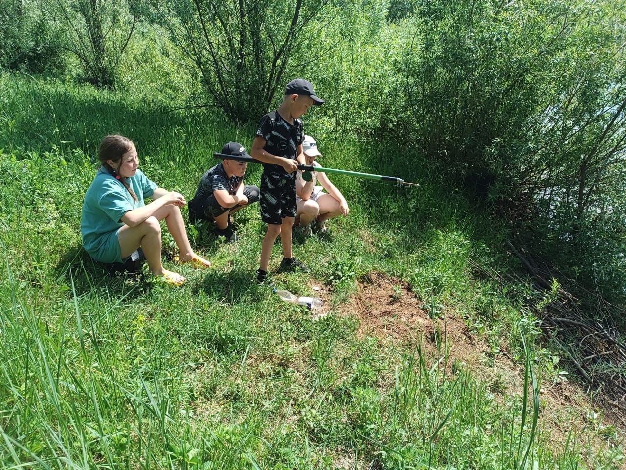 Шестнадцатый день пришкольного лагеря начался с приема детей, инструктажа по технике безопасности и энергичной зарядки. После завтрака посмотрели мультфильмы. Затем сходили на экскурсию к роднику. Мальчики увлеченно ловили рыбу, девочки собирали цветы в букеты. После обеда повторили художественные номера к закрытию лагеря. Перед расставанием поиграли в подвижные игры/ Мәктәп яны лагереның уналтынчы көне балаларны кабул итү, куркынычсызлык техникасы һәм энергияле зарядка буенча инструктаж белән башланды. Иртәнге аштан соң мультфильмнар карадык. Аннары чишмәгә экскурсиягә киттек. Малайлар балык тотарга ярата, кызлар чәчәкләрне чәчәк бәйләмнәренә җыйдылар. Төшке аштан соң лагерь ябылуга сәнгать номерлары кабатланды. Аерылыр алдыннан хәрәкәтле уеннар уйнадык. -