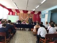 В рамках профориентационной работы в школе прошла встреча с людьми различных профессий. Директор школы Гайнутдинов И.З. познакомил с гостями встречи, это Гарифуллина Г.М.- бывший председатель Нижнерусского сельского поселения, Тимофеева В.П. - учительница биологии и химии, Гордеев И.В -руководитель КФХ. и главный агроном АО "Агрохимсервис" Василий Сабитович. Каждый гость ознакомили учеников со своими профессиями, в которых они работали и работают. Встреча получилась очень интересной, поучительной и мы надеемся, что выступления гостей поможет старшеклассникам в выборе профессий./ Һөнәри юнәлеш бирү эше кысаларында мәктәптә төрле һөнәр ияләре белән очрашу узды. Мәктәп директоры И.З. Гайнутдинов очрашу кунаклары белән таныштырды, бу - Гарифуллина Г. М. - Түбән Үрәс авыл җирлегенең элеккеге рәисе, Тимофеева В. П.- биология һәм химия укытучысы, Гордеев И. В. - КФХ җитәкчесе. һәм "Агрохимсервис" АҖнең баш агрономы Василий Сабитович. Һәр кунак укучыларны үз һөнәрләре белән таныштырды. Очрашу бик кызыклы, гыйбрәтле булды һәм без кунакларның чыгышлары югары сыйныф укучыларына һөнәр сайлауда ярдәм итәр дип өметләнәбез