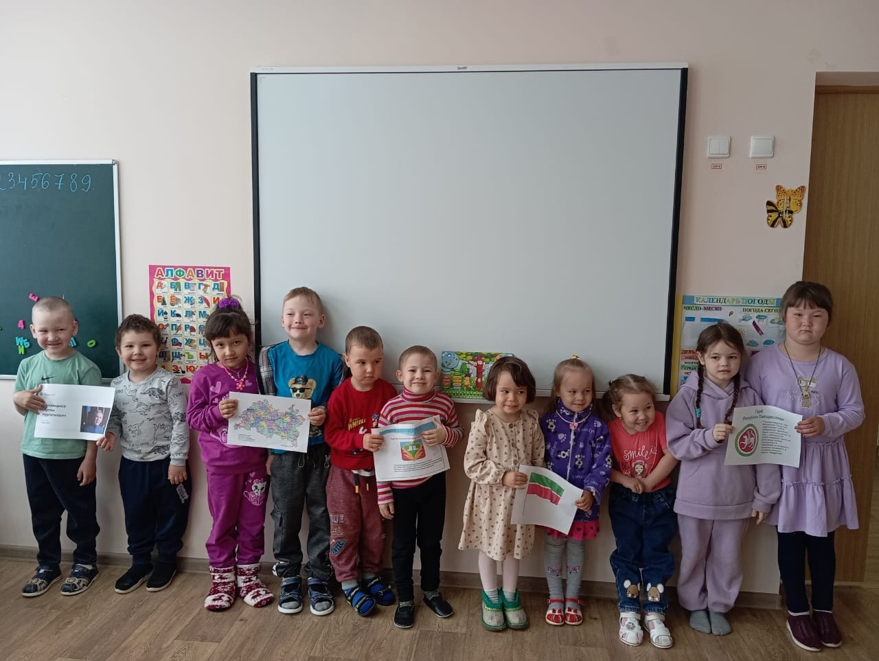 30 мая в дошкольной группе провели урок "Знаю Татарстан" в рамках Республиканской просветительской акции. С дошкольниками говорили о Республике Татарстан, о символах – флаге и гербе, о городах Татарстана, о людях, проживающих в нем.Также для дошкольников провели урок "Право и закон". Обсудили с ними такие понятия как: преступление, ответственность за правонарушение, Конституция. Выяснили для чего были придуманы законы и к чему привело бы отсутствие законов./ Мәктәпкәчә яшьтәге балалар белән Татарстан Республикасы, символлар - флаг һәм герб, Татарстан шәһәрләре, анда яшәүче кешеләр турында сөйләштеләр.