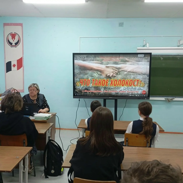 27 января для учащихся 7, 8, 9, классов был проведен урок мужества «Холокост: нити памяти», посвящённый Международному дню памяти жертв Холокоста. Ребята познакомились с историей Холокоста, узнали о том, что концентрационные лагеря – одни из самых страшных творений фашистов, увидели весь ужас испытаний, выпавших на долю взрослых и детей в лагерях Освенцим, Бухенвальд, Дахау и др. Учащиеся просмотрели короткометражный фильм "День памяти жертв Холокоста". В ходе мероприятий был сделан вывод, что знание о прошлом своего народа необходимо, прежде всего, для того, чтобы подобная трагедия не повторилась когда-либо на Земле/27 январь көнне 7, 8, 9 сыйныф укучылары өчен халыкара Холокост корбаннарын искә алу көненә багышланган «Холокост: хәтер җепләре» батырлык дәресе үткәрелде. Балалар Холокост тарихы белән таныштылар, концентрацион лагерьларның фашистларның иң куркыныч иҗаты булуын белделәр, Освенцим, Бухенвальд, Дахау һ.б. лагерьларда өлкәннәр һәм балалар өлешенә төшкән барлык сынауларны күрделәр. Укучылар "Холокост корбаннарын искә алу көне" дигән кыска метражлы фильм карадылар. Чаралар барышында үз халкының үткәнен белү, беренче чиратта, мондый фаҗига җир йөзендә кайчан да булса кабатланмасын өчен кирәк дигән нәтиҗә ясалды.