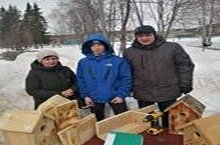 Сегодня в парке им. Булатова состоялся конкурс скворечников. Учитель технологии Андреева С. Е. и ученик 8 класса Богданов М. активно приняли участие в конкурсе./ Бүген Булатов исемендәге паркта сыерчык оялары конкурсы булды. Мәктәбебез укытучысы Андреева С.Е. һәм 8 нчы сыйныф укучысы Богданов М. әлеге чарада актив катнаштылар.