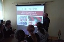 Сегодня в День солидарности в борьбе с терроризмом во всех классах прошли классные часы под девизом "Мы против терроризма!". Также учитель ОБЖ Михайлов А.Н.провел урок на тему: "Ради жизни на земле", посвященный Памяти жертв в Беслане.