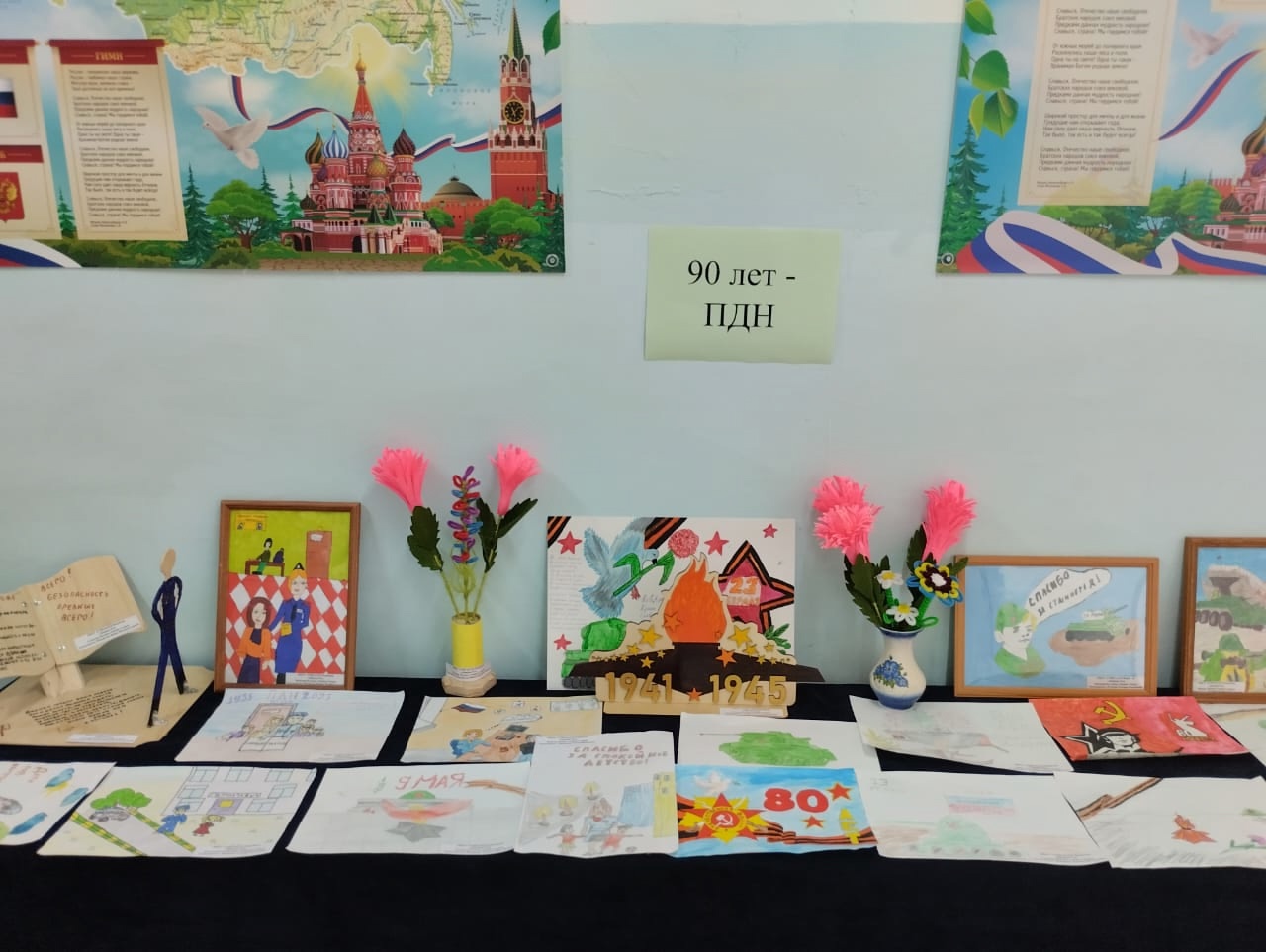 В связи с годовщиной 80-й Победы в Великой Отечественной войне 1941-1945 годов и специальной военной операции, в рамках творческого конкурса, посвященного Дню Победы и специальной военной операции, в школе организована выставка рисунков, поделок и сочинений.