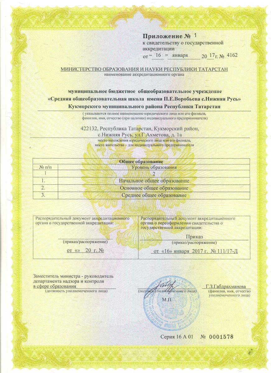 | Адрес: | 422132, Республика Татарстан, Кукморский район, с. Нижняя Русь, ул. Г.Ахметова, д. 1а |