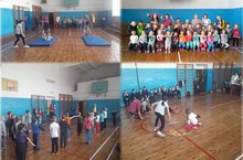 В спортивном зале школы между нынешними и будущими первоклассниками образовательного процесса состоялся спортивный праздник «Весёлые старты». Перед началом соревнований Доктор Айболит проверил здоровье участников. Убедившись, что все частники весёлые, бодрые и здоровые, он допустил всех к старту. Все эстафеты ребята прошли быстро и ловко. Потанцевать и порезвиться с малышами пришли герои Клёпа и Ириска. Радости ребят не было предела!