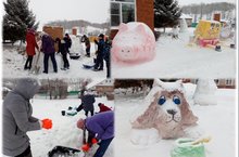 Не усидели родители в воскресенье дома, откликнулись на просьбу! И дружно сотворили все эти снежные фигуры.