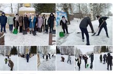 Сегодня обучающиеся 8 класса МБОУ "НСШ им. М. П. Прокопьева" под руководством советника директора по воспитанию Ивановой О.А. приняли участие в традиционной акции по уборке территории возле памятника погибшим воинам от снега.