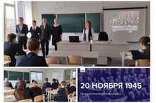 Сегодня для обучающихся 9 класса учитель истории и обществознания Павлова З.М., советник директора по воспитанию Иванова О.В. провели «Урок памяти», посвященный этому событию. В ходе урока был показан фильм «День начала Нюрнбергского процесса», после просмотра которого ребята отвечали на вопросы о процессе и рассказали о его значении в мировой истории.