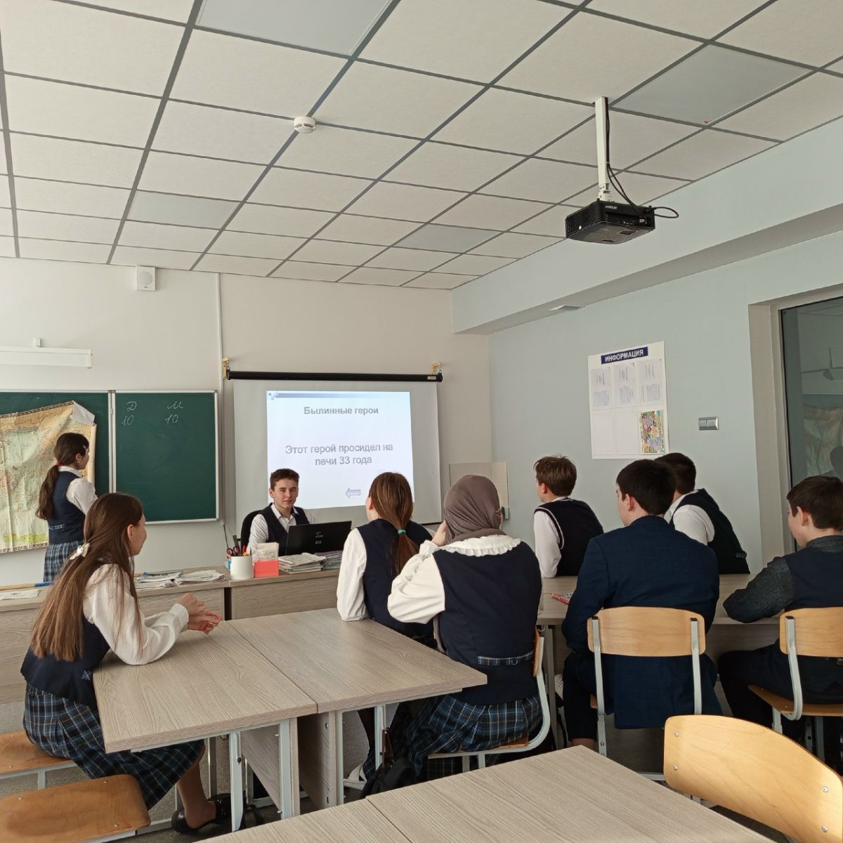Опубликовано: 09.12.2025Сегодня, в рамках недели истории и обществознания и Дня героев Отечества, обучающиеся 9 класса приняли участие в интеллектуальной игре в формате "Своя игра". Тематика вопросов касалась славных страниц нашего прошлого, знаменитых воинов и деятелей, чьи имена навсегда вписаны в историю нашей страны.