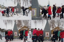 Учащиеся школы присоединились к Всероссийской акции Российского военно - патриотического общества и 3 декабря в 12.00 часов возложили цветы к памятнику павших воинов в с. Ошторма – Юмья.