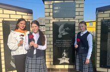 Активисты Движения первых под руководством советника директора по воспитанию и взаимодействию с детскими общественными объединениями возложили цветы к памятнику, присоединились к акциям «Обелиск» и «Помня о подвиге».