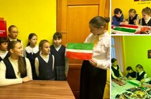 Якимова Дарья, лидер направления «Патриотизм и историческая память: Служи Отечеству!», под руководством Степановой В.В., советника директора по воспитанию, провела для Орлят России патриотический час «День государственного флага РТ».