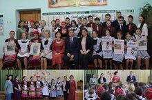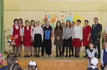 Главатских А.А. яшь хәбәрчеләребезгә истәлекле бүләкләр тапшырды. Ул безнең мәктәпнең балалары һәм яшүсмерләре елдан-ел "Ӟечбур!" газета битләрендә бастырылуын билгеләп үтте. Алеся Александровна барлык кунакларга "Гири һәм Капа" видеороликларын булдыру тарихын сөйләде.