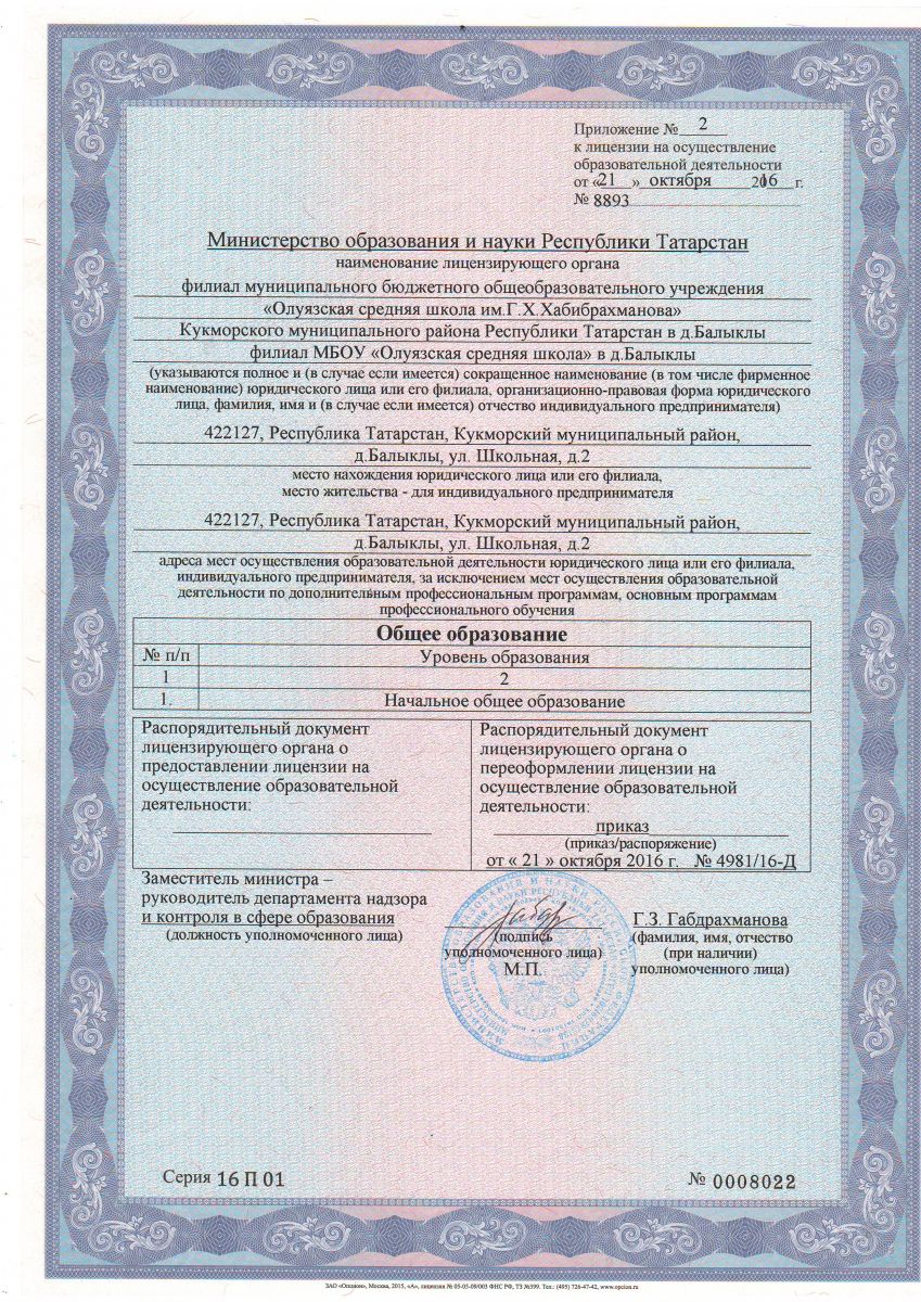 | Адрес: | 422127, Республика Татарстан, Кукморский муниципальный район, с. Олуяз, ул. Новая, д. 1а |