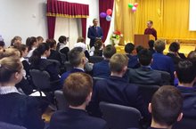 Предприниматель Марданов Р.Р.рассказал о переработке мяса в своем частном предприятии. Будущим технологам предложил рабочие местас хорошей зарплатой. Спасибо!!!