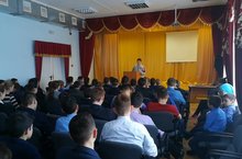 В рамках месяца спортивно массовой работы действующий спортсмен, член сборной команды района по национальной борьбе Фаттахов Динар Зуфарович выступил перед учащимися.