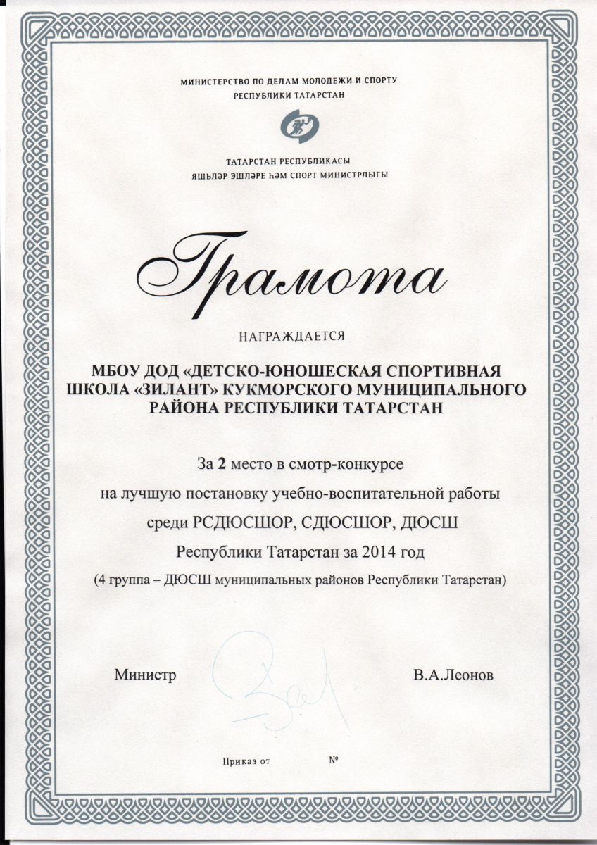Грамота, Министерство по делам молодежи и спорту РТ, 2 место,2015