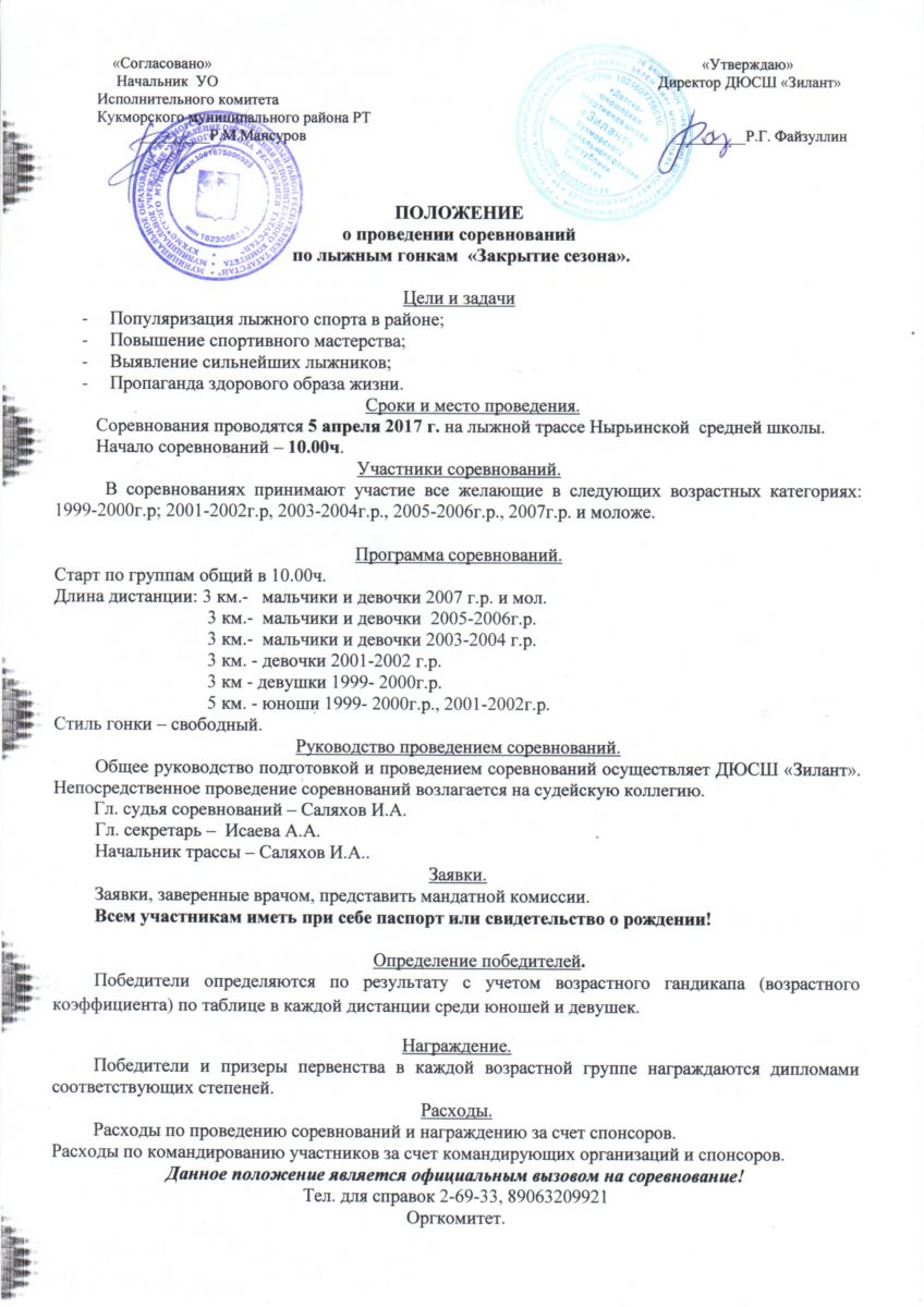 Положение лыжные гонки 05.04.2017г.