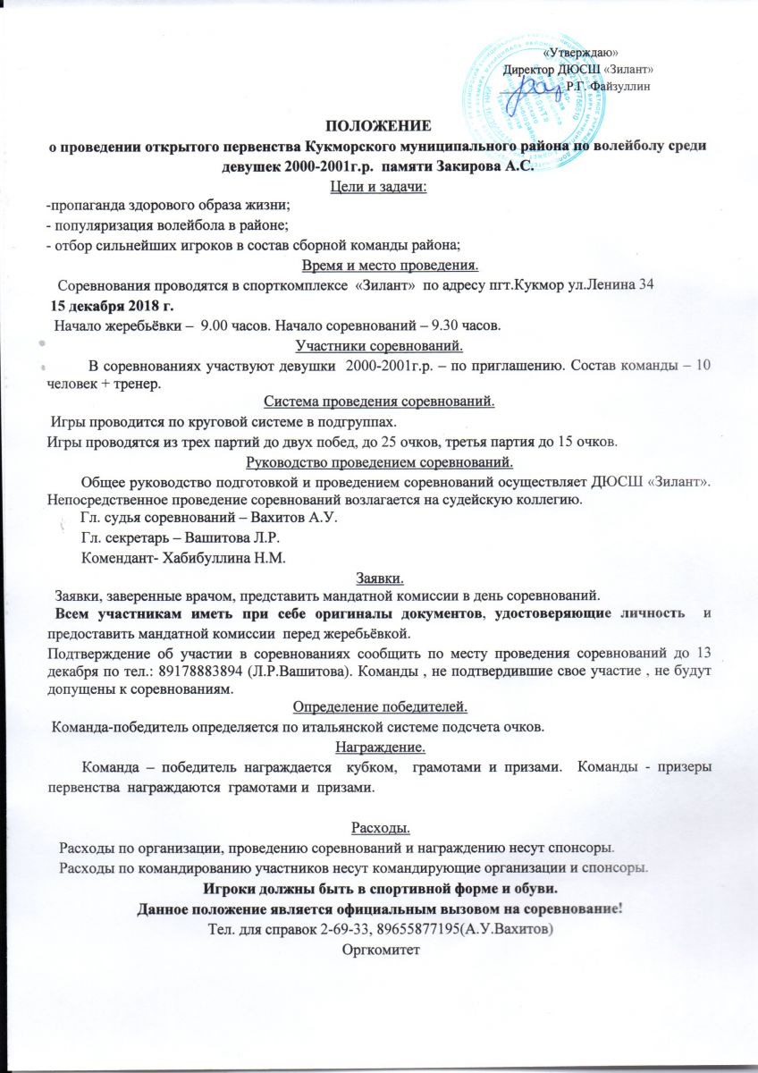 Положение открытого Первенства Кукморского муниципального района по волейболу, памяти Закирова А.С.