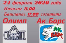24 февраля 2020 года состоится матч Первенства РТ по хоккею среди команд 2008г.р. «Олимп» г. Кукмор и «Ак Барс» г.Казань.