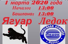1 марта 2020 года состоится матч Первенства РТ по хоккею среди команд 2006г.р. «Ягуар» г. Кукмор и «Ледок» г.Нурлат.