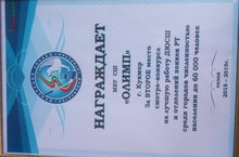 МБУ «СШ «Олимп» г.Кукмор был награжден грамотой за II место в смотре-конкурсе на лучшую работу ДЮСШ и отделений хоккея РТ среди городов численностью населения до 60 000человек в сезоне 2018-2019гг. Торжественное вручение состоялось 30 мая 2019г. в г.Казань на базе ФГБОУ ВО «Поволжская ГАФКСиТ».