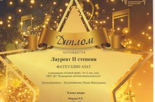 - Лауреат 2 степени на Республиканском конкурсе детского творчества "Арча ягы- данлы Тукай ягы";