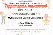 Театр бүлеге укучысы Мөбәрәкшина Сирина казанышлар һәм җиңүләр копилкасына тагын бер диплом өстәде. Ул «Талантлар территориясе» халыкара сәнгать конкурсында 2 дәрәҗә лауреат булды. Һәм, әлбәттә , җитәкче Хәбибуллина Д.Р. рәхмәт хаты белән бүләкләнде.