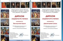 Учащиеся художественного отделения Кукморской детской школы искусств приняли участие во Всероссийской заочной олимпиаде по истории искусств "От Джотто до Дюрера". Валиуллина Аделя- Диплом 3 степени, Давлетшина Гузель- Диплом 3 степени (рук. Вилданова М.М.). Поздравляем победителей.