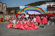 Праздничный день начался с возложения венков у памятника возле русского кладбища. Цветы и венки к памятнику возложили руководство района, руководители всех предприятий, организаций, бюджетных учреждений.