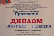 13 октября в г.Казань состоялся I Всеросcийский конкурс «Призвание» для преподавателей детских музыкальных школ, школ искусств, и профессиональных образовательных учреждений сферы культуры, организованный Народной артисткой РФ и РТ, лауреатом Государственной премии Г. Тукая, Кавалер 2-х орденов: ордена «Дружбы народов» и ордена «За заслуги перед республикой Татарстан», солисткой ТАГТО и Б им. М. Джалиля, профессором, зав. кафедрой сольного пения ФМИ КазГИК Ганеевой Винерой Ахатовной. Преподаватель Кукморской десткой школы искусств Миляуша Рустамовна Сафина удостоена Дипломом Лауреата I степени. Директору школы искусств Регине Исмагиловне Ваккасовой вручено Благодарственной письмо от организаторов конкурса, за большой вклад в духовно-нравственное воспитание подрастающего поколения. -