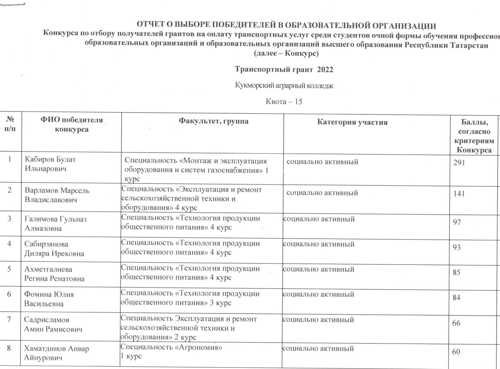 Победители транспортного гранта «Кукморский аграрный колледж».