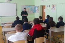 22 марта старший лейтенант полиции ОУР ОМВД по Кукморскому району Таразов И.Р. провел беседу с обучающимися 8-10 классов по теме "Правила посещения социальных сетей, недопущение подписок в запрещенные сайты", Профилактика экстремизма, терроризма"