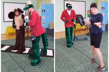 Сегодня в гости, к детям, приехал театр из Нижнекамска. Была прказана постановка "Чебурашка идет в школу". Ребята повторили правила дорожного движения и поведения на улице.