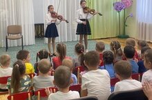 Сегодня в нашем ДОУ выступали ученики музыкальной школы. Их выступления были одарены аплодисментами юных зрителей, которые хлопали громко понравившемуся инструменту и артисту.