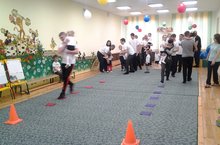 В детском саду проходят спортивные мероприятия "Папа может...." Дети с папами соревнуются, проходят различные интересные испытания....